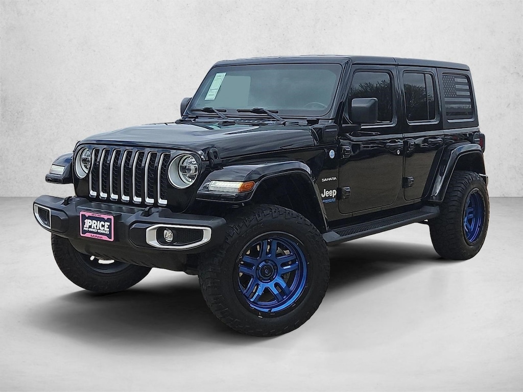 Contact AutoNation Ford Frisco today for information on dozens of vehicles like this 2021 Jeep Wrangler 4xe Unlimited Sahara. This Jeep includes: REMOTE PROXIMITY KEYLESS ENTRY Keyless Start Power Door Locks Keyless Entry BLACK, LEATHER TRIMMED SEATS W/SAHARA LOGO Leather Seats Bucket Seats TRANSMISSION: 8-SPEED AUTO 8P75PH PHEV (STD) 8-Speed A/T Transmission w/Dual Shift Mode A/T BLACK 3-PIECE HARD TOP Targa Roof Rear Defrost Convertible Hardtop MANUFACTURER'S STATEMENT OF ORIGIN ENGINE: 2.0L I4 DOHC DI TURBO PHEV (STD) 4 Cylinder Engine Turbocharged Plug-In Electric/Gas BLACK CLEARCOAT QUICK ORDER PACKAGE 29P SPORT SUSPENSION (STD) *Note - For third party subscriptions or services, please contact the dealer for more information.* Treat yourself to an SUV that surrounds you with all the comfort and conveniences of a luxury sedan. The Jeep Wrangler 4xe Unlimited Sahara's pristine good looks were combined with the Jeep high standard of excellence in order to make this a unique find. Equipped with 4WD, this Jeep Wrangler 4xe Unlimited Sahara gives you added confidence to tackle the surface of any path you take. In addition to being well-cared for, this Jeep Wrangler 4xe has very low mileage making it a rare find. Added comfort with contemporary style is the leather interior to heighten the quality and craftsmanship for the Jeep Wrangler 4xe Unlimited Sahara.